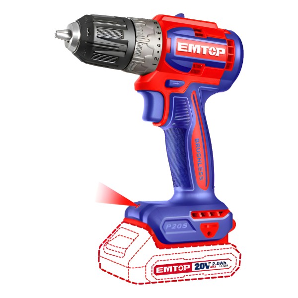 El taladro atornillador ECDL204531 sin cable de la marca EMTOP cuenta con tecnología de motor sin escobillas. Es ideal para diversas aplicaciones de perforación y atornillado, ofreciendo una potencia fiable para tareas domésticas o profesionales.