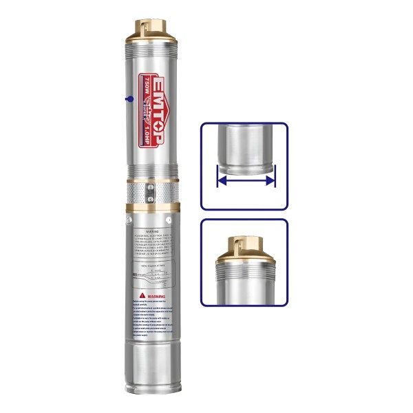 Bomba sumergible Emtop para pozo profundo de 4” y cuerpo de acero inoxidable.
