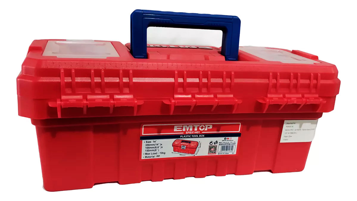 La Caja Herramientas Plástica Con Bandeja de 14 Pulgadas de Emtop es la solución ideal para quienes buscan organización y funcionalidad en su espacio de trabajo. Con un diseño robusto y un atractivo color rojo, esta caja está fabricada en plástico de alta calidad, garantizando durabilidad y resistencia ante el uso diario.