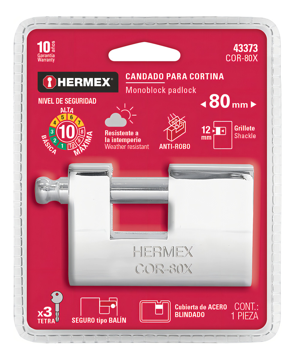 La calidad de Hermex se refleja en cada detalle de este candado, garantizando un rendimiento confiable en diversas condiciones. Su diseño blindado lo hace resistente a la corrosión y al desgaste, asegurando una larga vida útil. Este candado es la elección perfecta para quienes valoran la seguridad sin comprometer la estética.