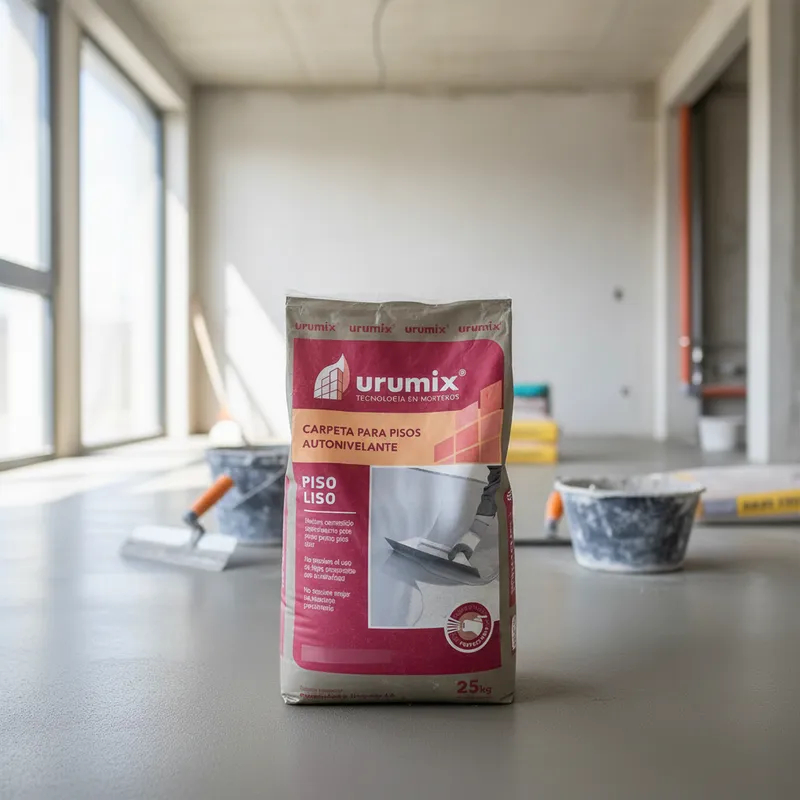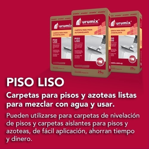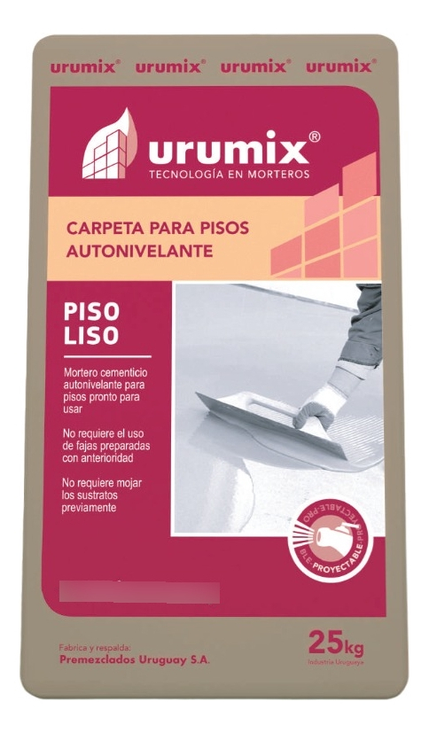 URUMIX PISO LISO es un mortero autonivelante para pisos pronto para usar, ideado especialmente para realizar carpetas de tránsito medio, así también como carpetas de nivelación, tanto en interiores como en exteriores.