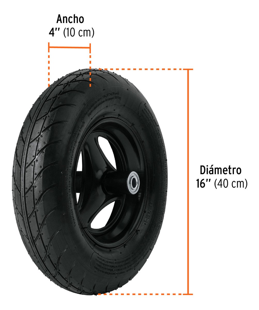 • 2 Llantas neumáticas de rodada lisa con rin de 3 aspas