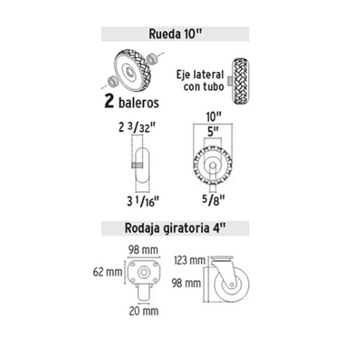 • 2 ruedas neumáticas de caucho parausarse en forma