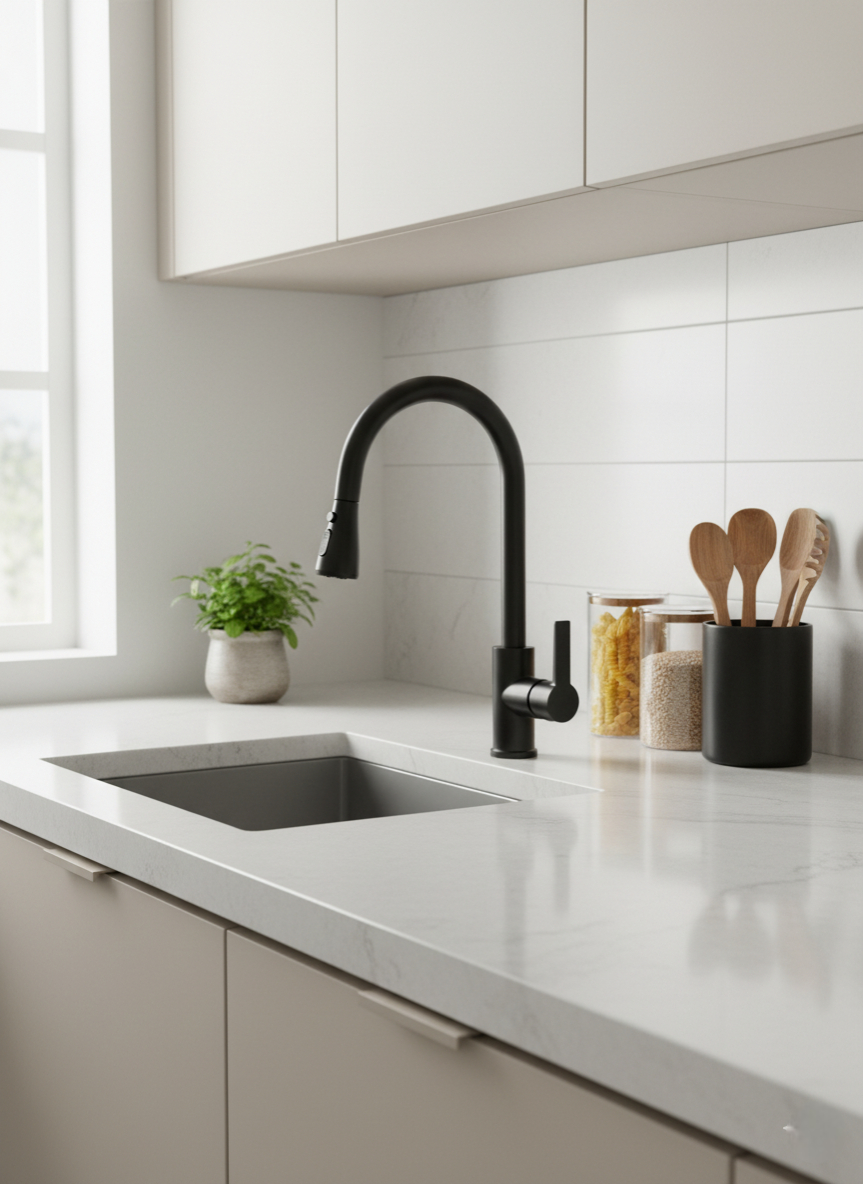 Con pico extensible, este grifo te va a dar mayor practicidad para llegar a donde necesites. Evitá derrames y mantené tu espacio siempre limpio.