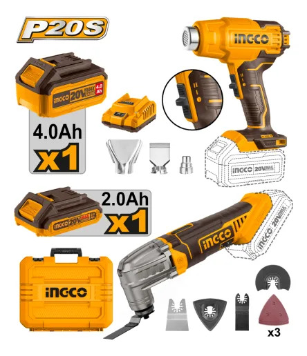 Kit 20v Pistola Calor + Multifunción Ingco Cosli230703