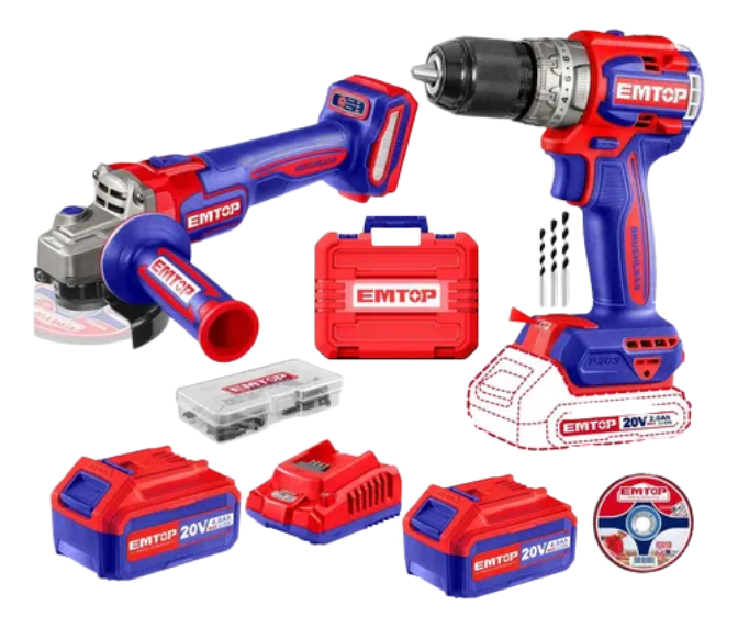 Potencializa tu trabajo con el Combo Taladro Percutor y Amoladora Brushless de Emtop, diseñado para satisfacer las necesidades de los profesionales y entusiastas del bricolaje. Este versátil conjunto incluye una amoladora de alto rendimiento y un taladro percutor potenciado por batería de 20v, brindando la libertad de movimiento sin depender de una fuente de alimentación fija.