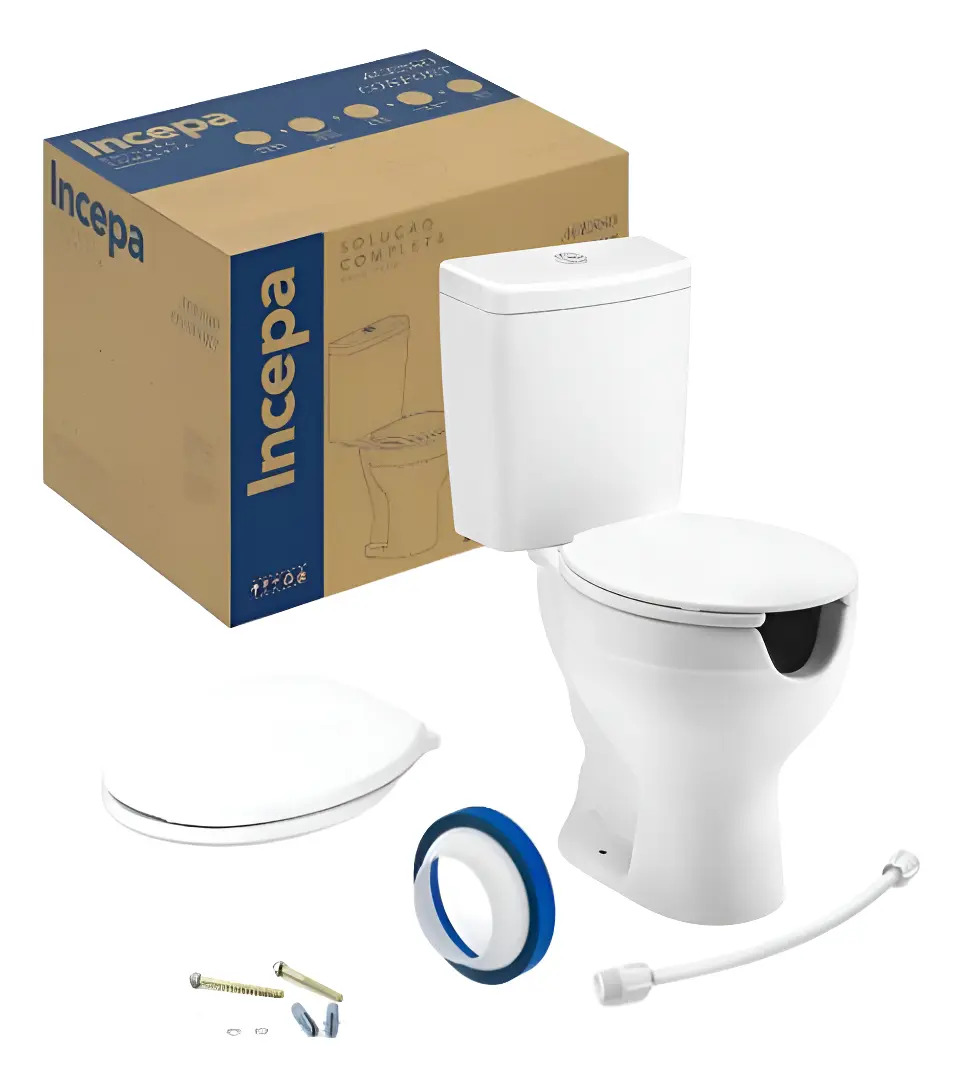 KIT: INODORO CON MOCHILA + TAPA INODORO + GOMA DE ASIENTO AL PISO + TORNILLOS DE AMURE VERTICAL + COLILLA