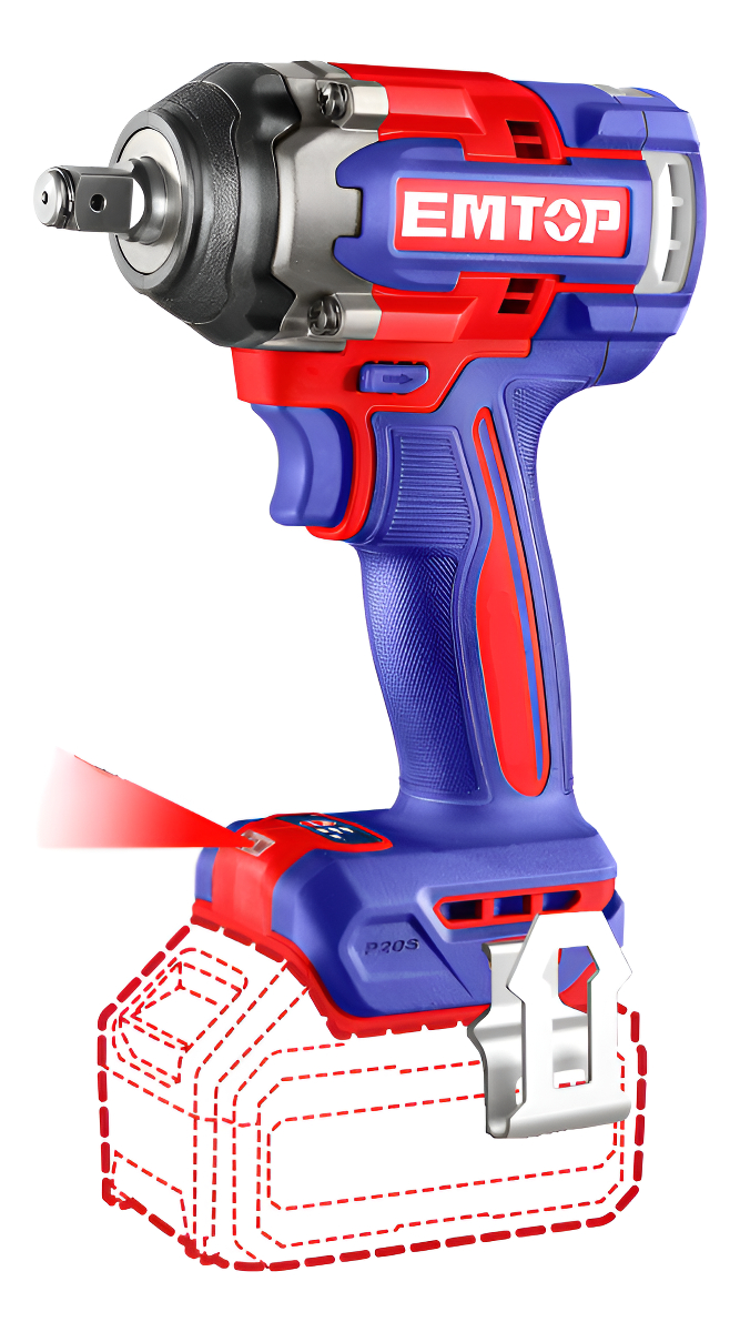Llave De Impacto 20v S/carbones 400nm + 2bat Emtop Eciwl2040