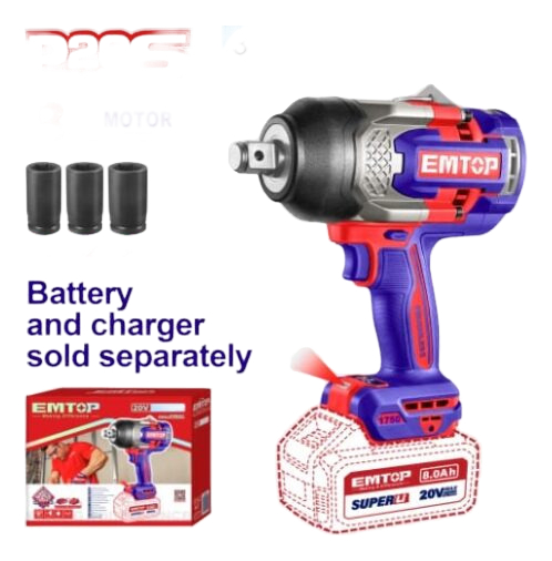 Llave De Impacto Inalámbrica 3/4 1750nm Emtop Eciwl201751