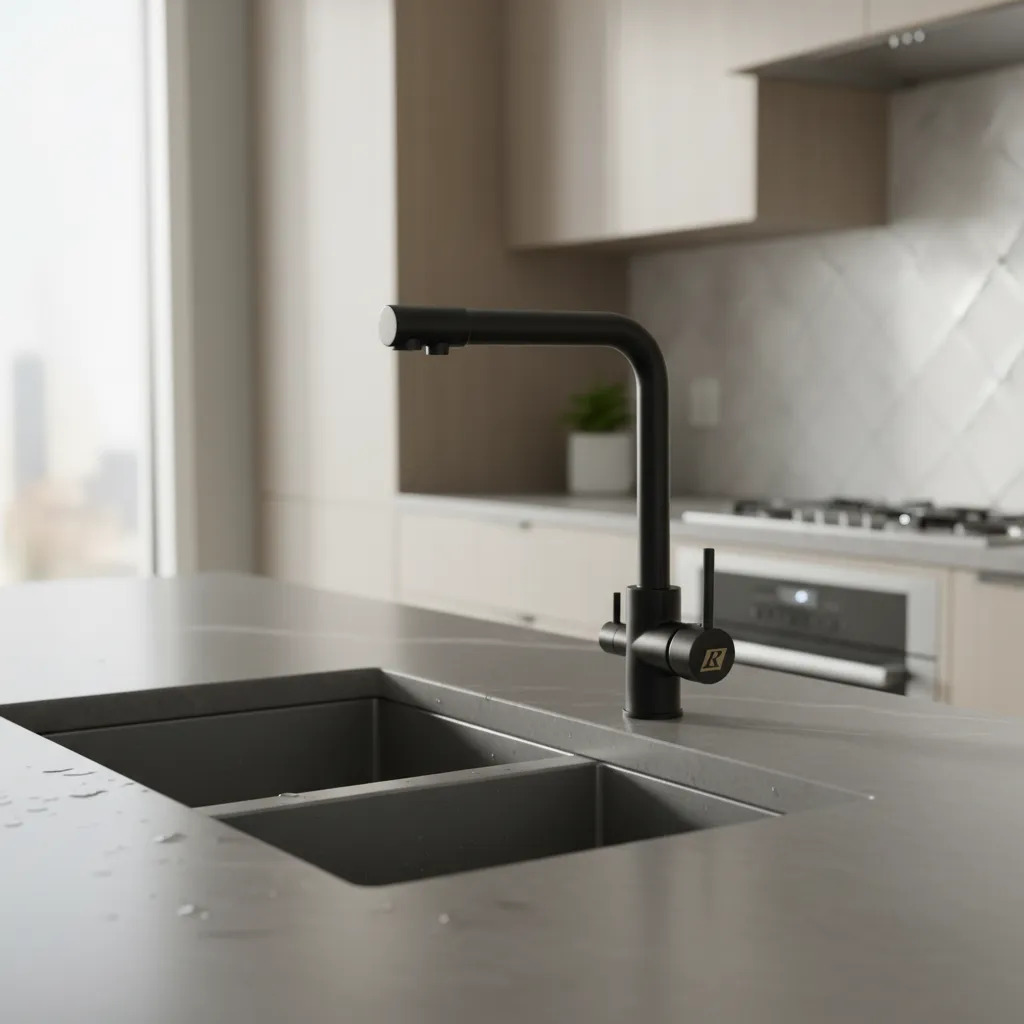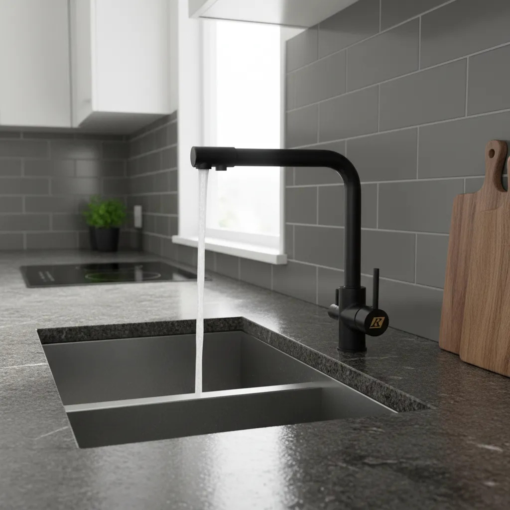 La estética moderna en color negro añade un toque contemporáneo a tu cocina, convirtiéndola en un espacio más acogedor y funcional. Ideal para quienes valoran la calidad y el diseño, esta grifería es una inversión que realza la experiencia culinaria. Con Rimontti, cada detalle cuenta para transformar tu cocina en un lugar de inspiración.
