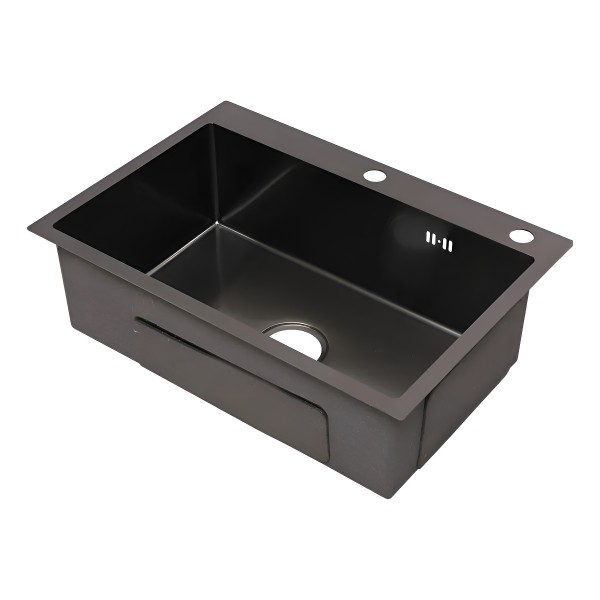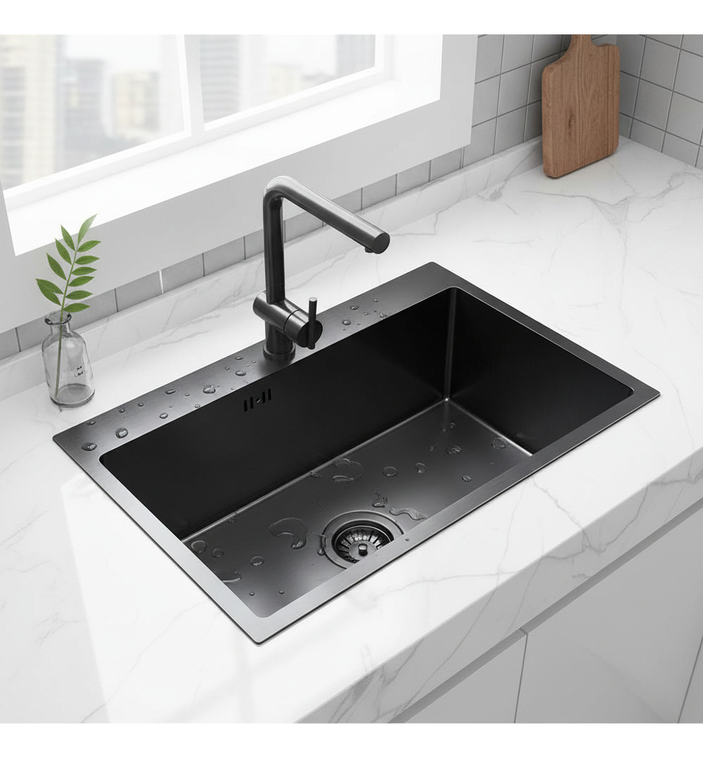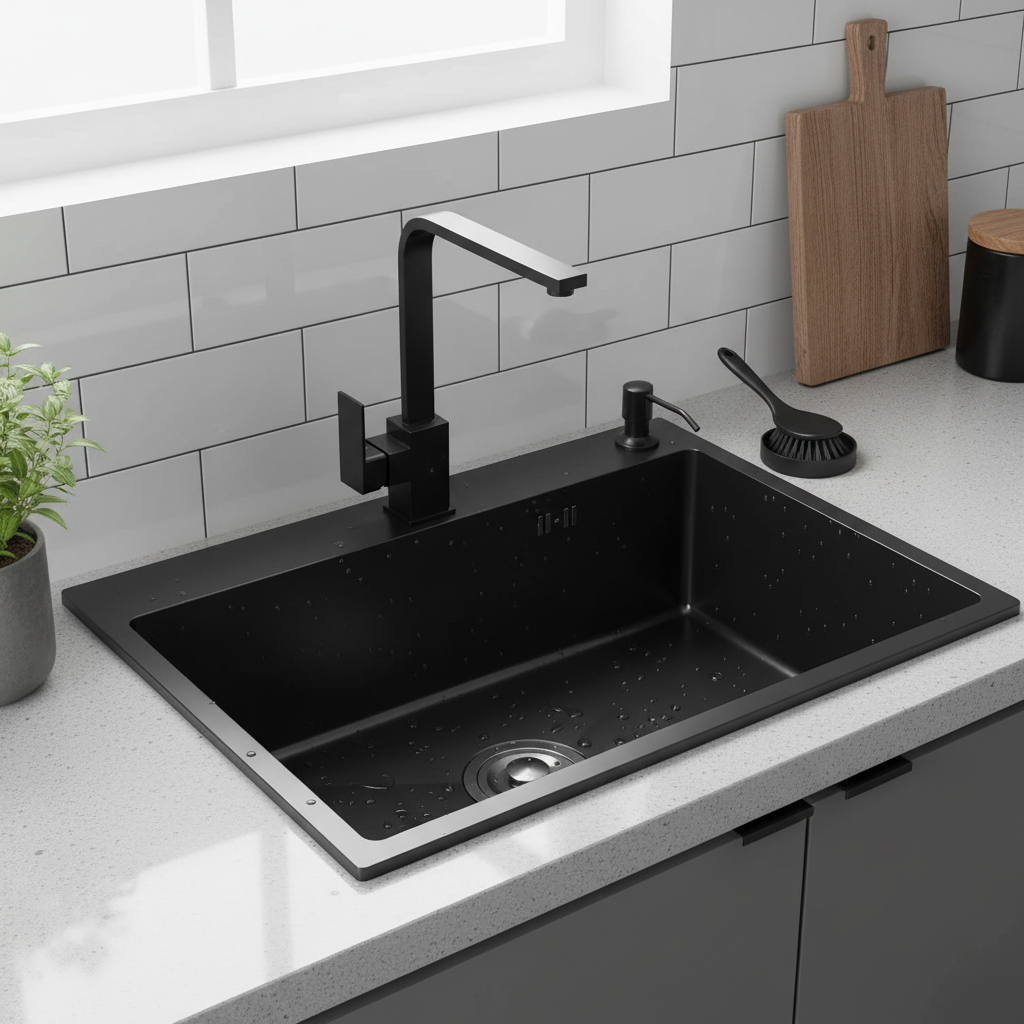 Pileta Simple Cuadrada Cocina Negra Grafito Acero Inox