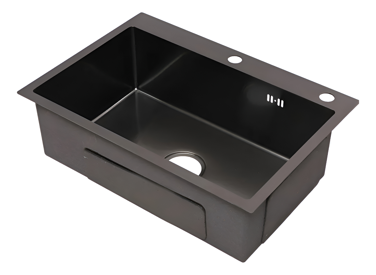 La pileta simple cuadrada de cocina negra grafito de acero inoxidable modelo Esparta de la marca Greece es la elección perfecta para quienes buscan funcionalidad y estilo en su espacio culinario. Con unas dimensiones de 550 mm de largo, 430 mm de ancho y 220 mm de profundidad, esta pileta se adapta a diversas configuraciones de cocina, ya sea embutida o sobrepuesta, brindando versatilidad en su instalación.