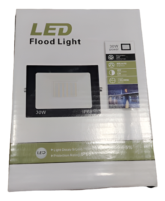 Este reflector no cuenta con sensor de movimiento ni es inalámbrico, lo que lo hace sencillo de implementar en una variedad de configuraciones. Su potencia de 30 W asegura un rendimiento eficiente, iluminando adecuadamente incluso las áreas más oscuras.