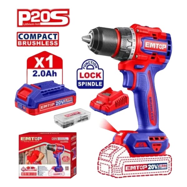 El Taladro Atornillador a Batería Emtop ECDL205582 es la herramienta perfecta para aquellos que buscan eficiencia y comodidad en sus proyectos de bricolaje y mantenimiento. Con un potente motor sin escobillas y una velocidad máxima de 2000 rpm, este taladro es ideal para perforar y atornillar en diversos materiales. Su mandril de 13 mm permite una fácil adaptación de las puntas y mechas, ofreciéndole versatilidad en cada tarea.
