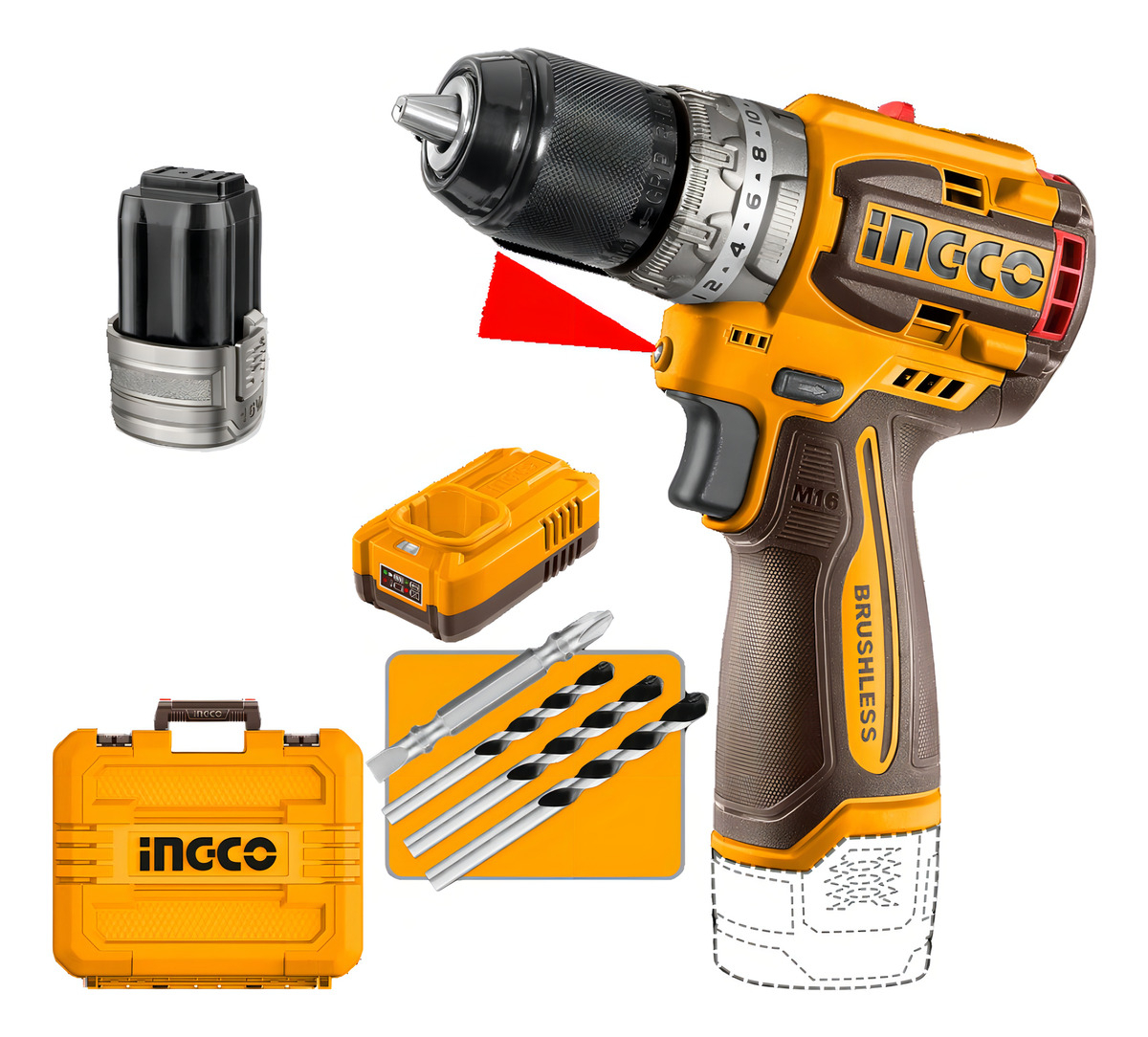TALADRO ATORNILLADOR C/PERCUTOR 16V M16 60Nm 2.0AH BRUSHLESS MOTOR C/2 BATERÍAS + CARGADOR + PUNTAS + VALIJA